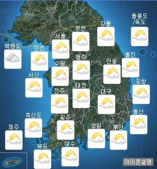 낮 기온은 내륙을 중심으로 30도 내외로 올라 더울 것으로 예측된다.
