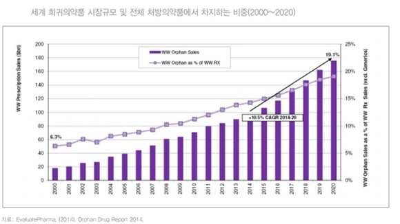 현재 의학계에 따르면 희귀질환은 7000여개 정도로 집계되고 있다. 하지만 이 분야에 대한 연구 및 투자가 미진했던 탓에 이런 희귀질환 치료제의 상용화는 전체 질환의 10%에도 못 미치고 있는 실정이다. 이에 희귀질환 치료제의 성장가능성을 높이 산 다국적 글로벌 제약사들이 희귀질환 치료제에 관심을 갖고 투자를 시작하고 있다.