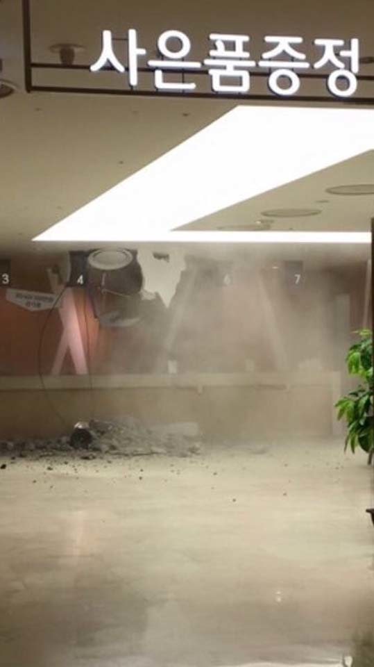 지난 2일 인터넷 커뮤니티에는 "서면 롯데백화점 현재 모습"이라는 이름의 사진이 게재됐다. 해당 사진은 부산 서면 롯데백화점 사은안내장 안쪽 천장이 무너져내린 모습이다.
