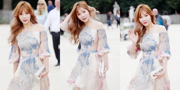 현아는 6일 오후 큐브엔터테인먼트 공식 SNS를 통해 지난 3일 유명 패션브랜드 ‘꾸트리시모(COUTURISSIMO)’의 초청으로 방문한 파리 패션위크 현장 사진을 깜짝 공개했다.