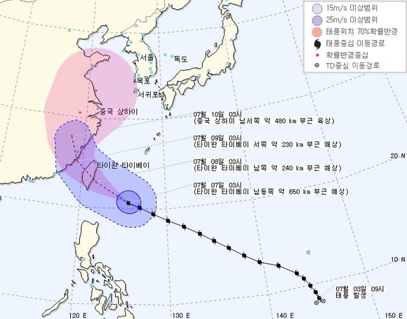 기상청은 "태풍의 세력이 약해져 열대성 폭풍 또는 온대성 저기압으로 변할 가능성도 있다"며 "많은 비가 예상되는 만큼 적절한 안전 대책을 마련하는 것도 필요하다"고 당부했다.