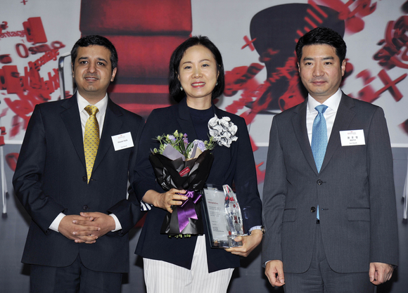 페덱스코리아가 7일 오후 서울 반포동 JW메리어트호텔에서 열린 에이온휴잇 주최 ‘2016 한국 최고의 직장' 시상식에서 '한국 최고의 직장 Top 10'을 수상했다. 이날 행사에 참석한 (사진 왼쪽부터)기탄쉬 마리크 에이온휴잇 싱가포르 대표, 채은미 FedEx코리아 지사장, 권오성 에이온휴잇 코리아 대표가 포즈를 취하고 있다.