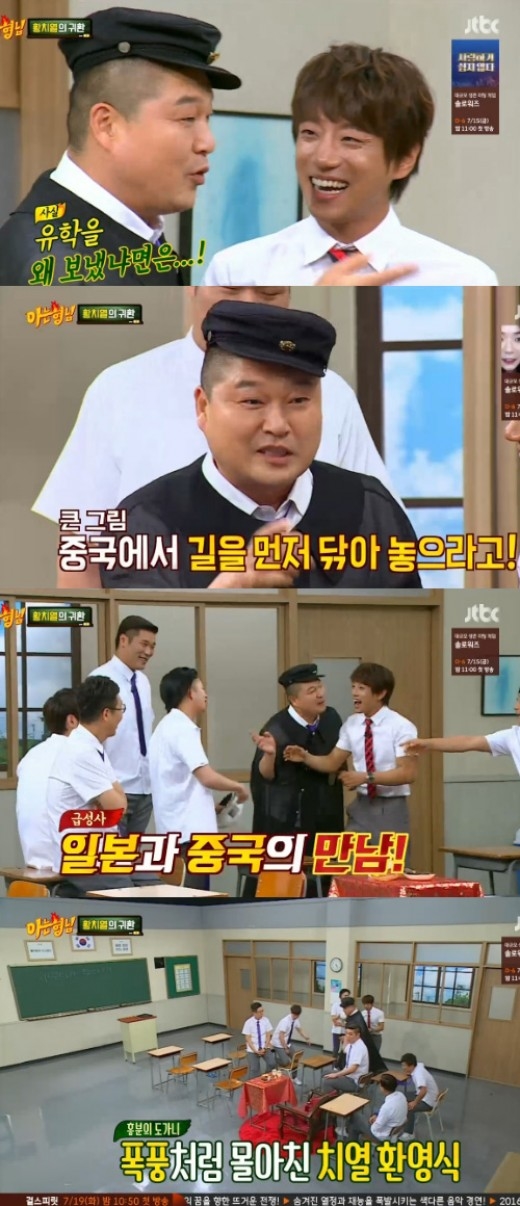 지난 9일 방송된 JTBC ‘아는형님’에는 중국에서 크게 인기를 모으고 한류스타가 돼 돌아온 황치열이 복학생라는 설정으로 등장했다. 이에 강호동은 크게 반가워하며 “내가 유학을 보냈는데, 유학을 왜 보냈느냐 하면 중국에서 길을 먼저 닦아놓으라고 보냈다”고 말해 웃음을 자아냈다.