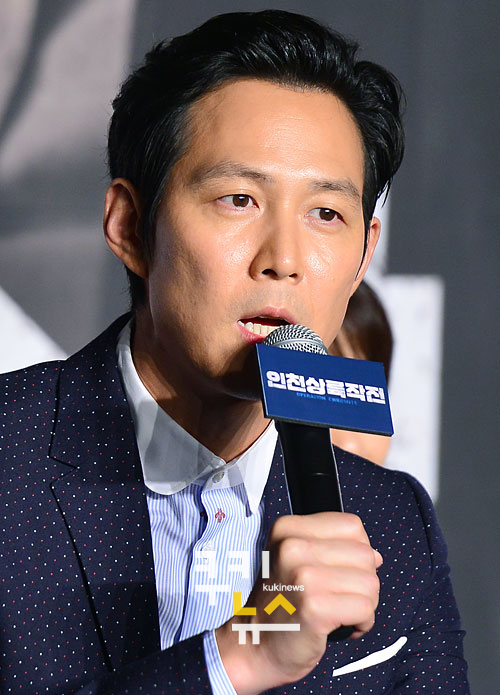 배우 이정재가 13일 오전 서울 여의도 콘래드호텔에서 열린 영화 ‘인천상륙작전’(감독 이재한) 내한 기자회견에서 취재진의 질문에 답하고 있다.