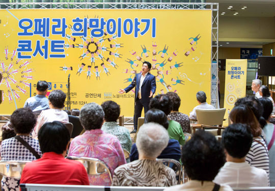 오페라 희망이야기콘서트는 평소 공연 문화를 접하기 힘든 환자와 가족,의료진을 위해 병원을 찾아가 펼치는 힐링 음악회다. 공연을 맡은 노블아트오페라단이 유명 오페라와 뮤지컬 테마곡, 영화음악을 해설과 함께 들려준다.