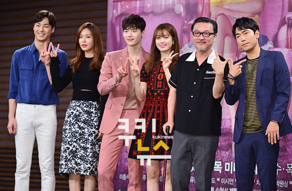 배우 이태환과 정유진, 이종석, 한효주, 김의성, 이시언이 18일 오후 서울 상암동 MBC 골든마우스홀에서 열린 새 수목드라마 ‘W’ 제작발표회에서 포토타임을 갖고 있다.