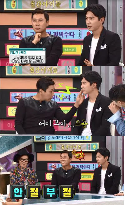 오는 26일 방송되는 '비디오스타' 3회는 연예계 대표 뷰티관리남 4인방을 초대해 이들의 뷰티 노하우를 공개한다. 이날 임창정, 홍경민과 함께 3대 여드름 연예인으로 군림한 데니안은 “이상민 피부는 여드름 상처가 있다. 그 점에서 내 피부가 이상민 피부보다 낫다”라는 발언을 한 것으로 알려졌다. 여기에 MC박나래는 “이상민씨 피부는 움푹 파인 달 표면 같다는 이야기 아니냐”며 데니안을 몰아가 웃음을 더했다.