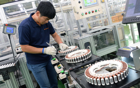 가장 처음 방문한 창원 2공장 C동에서는 세탁기와 식기세척기, 건조기 등에 들어가는 모터와 에어컨, 냉장고에 탑재되는 컴프레서용 모터 생산에 분주한 모습이었다.