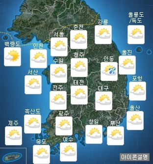 남부 내륙과 제주에서는 대기 불안정으로 낮에 소나기가 오겠다.