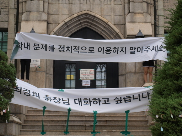 앞서 이화여자대학교 인문대 교수진 43명은 지난 2일 오후 '현재 이화여대 사태에 대한 인문대 교수들의 의견'이라는 제목의 성명서를 내고 "미래라이프대학 사업은 잠정 중단이 아니라 폐기돼야 한다"면서 "총장은 1600여 명의 경찰병력을 캠퍼스에 불러들인 초유의 사태와 이 사실에 대해 거짓 해명을 함으로써 이화의 명예를 실추시킨 데 대해 책임을 져야 한다"고 강조했다.