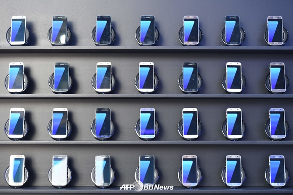 지난 2일(현지시간) 삼성 갤럭시의 새 플래그쉽 모델 갤럭시 S7이 브라질 리우데자이네로의 올림픽 공원에 장식돼 있다. 삼성은 2016 리우 올림픽의 공식 후원사로 등록돼 있다. 사진=@AFPBBNews