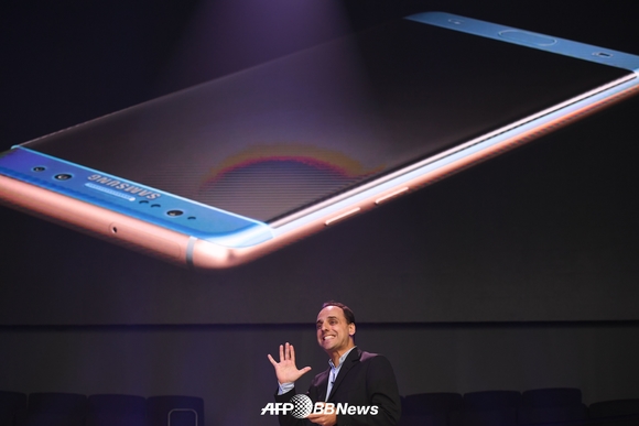 삼성 모바일 브라질의 레나토 시트리니가 지난 2일(현지시간)브라질 리우데자이네로 올림픽공원에서 열린 갤럭시 S7 미디어 대상 프레젠테이션에서 제품 설명 중이다. 사진=@AFPBBNews