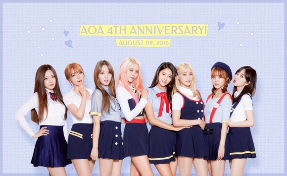 AOA는 9일 자정 공식 트위터 계정을 통해 데뷔 4주년을 기념하는 사진을 업로드했다. 공개된 사진 속에는 ‘AOA 4TH ANNIVERSARY! AUGUST 09, 2016’이 적혀있으며 오랜만에 선보이는 AOA 8명의 완전체 모습이 눈길을 사로잡는다.