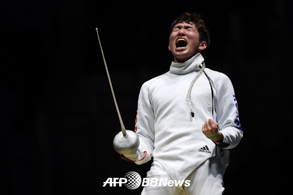 펜싱 국가대표 박상영이 10일(한국시각) 브라질 리우 카리오카 아레나에서 열린 '2016 리우데자네이루 올림픽' 펜싱 남자 개인 에페 결승전에서 헝가리의 제자 임레를 꺾고 금메달을 목에 걸었다.