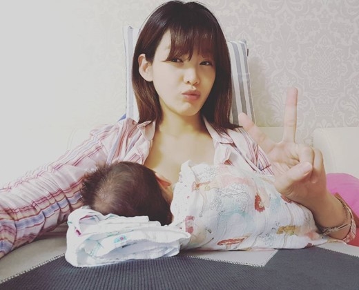최근 결혼해 딸을 낳은 방송인 정가은이 수유 중에 찍은 사진을 공개했다.