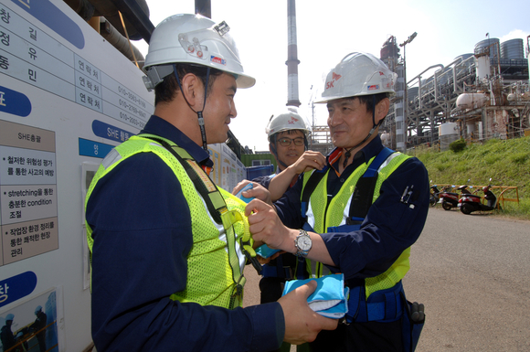 창사 이래 최대 규모의 정기보수 작업을 진행하고 있는 SK이노베이션 울산CLX(Complex)는 무더위 속에서 현장 작업자들의 건강과 안전을 지키기 위한 SHE(Safety, Health, Environment) 활동에 만전을 기하고 있다.