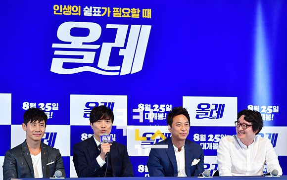 '올레'는 인생에 지친 세 남자들이 제주도로 일상탈출을 감행하면서 벌어지는 일을 그린다. 배우 신하균과 박희순, 오만석 등이 출연하며 오는 25일 개봉한다.tina@kukinews.com
