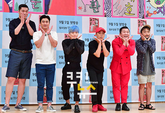 [쿠키뉴스=박효상 기자] 방송인 서장훈과 안정환, 이재진, 은지원, 조세호, 유병재가 22일 오전 서울 목동 SBS홀에서 열린 예능프로그램 ‘꽃놀이패’ 제작발표회에서 포토타임을 갖고 있다.