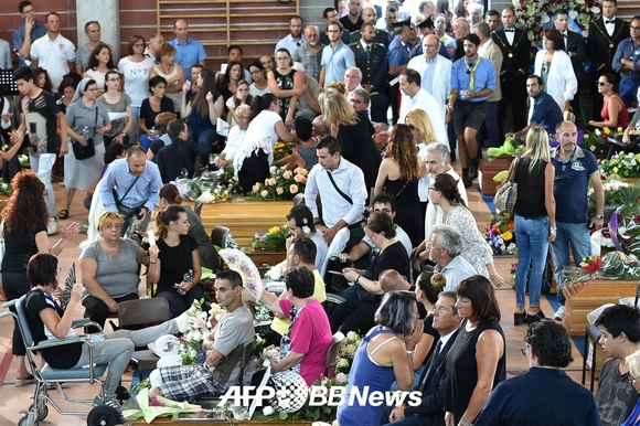 [쿠키뉴스=구현화 기자] 갑작스러운 강진이 일어난 이탈리아 마아트리스 마을의 이재민들이 26일 비상 대피소인 체육관에서 근심에 싸여 있다. 불과 3일 전 진도 6.2의 강진이 이 지역을 덮쳐 281명의 생명을 앗아갔다.