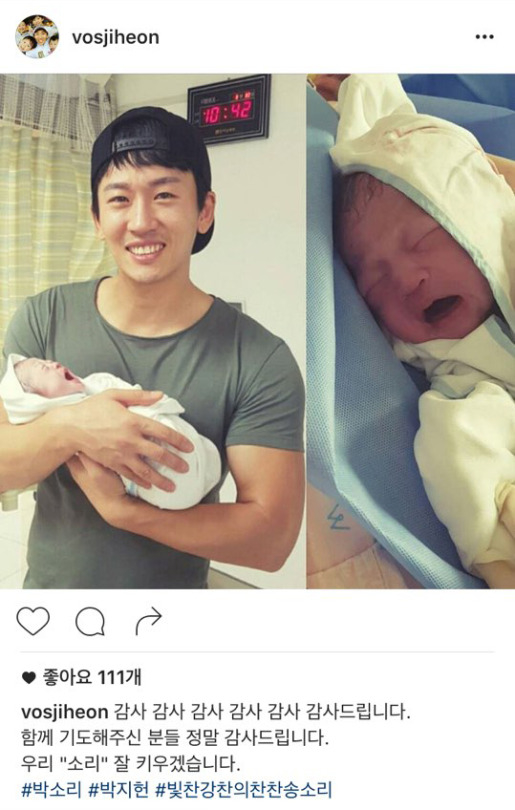 그룹 V.O.S 멤버 박지헌이 다섯 번째 딸을 얻었다.