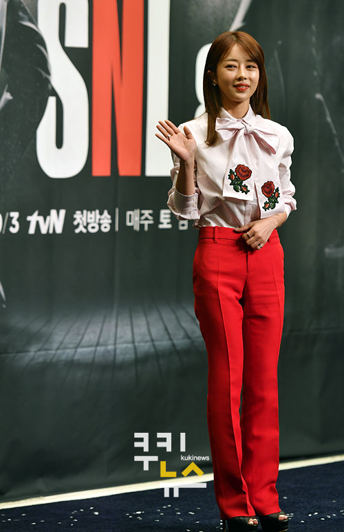 [쿠키뉴스=박효상 기자] 가수 이수민이 31일 오후 서울 상암동 스탠포드호텔에서 열린 tvN 예능프로그램 'SNL 코리아 시즌8' 제작발표회에서 포토타임을 갖고 있다.