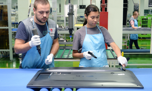 A동 TV 라인은 구미공장과 거의 유사한 형태의 최첨단 시설이었다. 폴란드에 있는 LG디스플레이 공장에서 모듈을 들여오면 이 모듈을 자동 스크류 체결기로 나사가 자동으로 박아진다. 이 시스템을 도입한 공장은 창원에 이어 러시아가 두 번째다. 이 외에도 껍데기 부품을 번거롭게 아래로 옮기지 않고 공중으로 흘러오게 하는 공중라인(입체라인) 등 최신 시설을 그대로 옮겨놓았다.