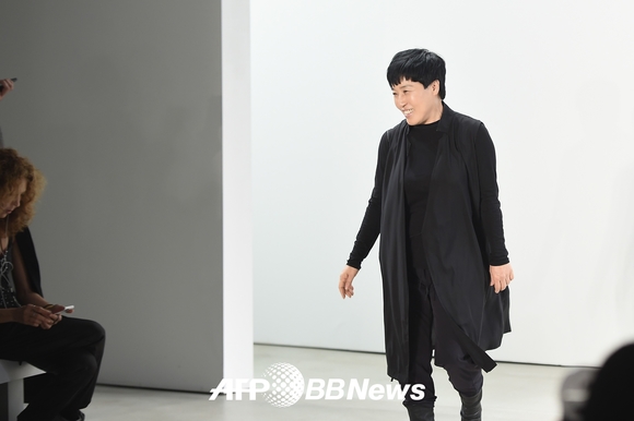 [쿠키뉴스=이은지 기자] 디자이너 박춘무가 9일(현지시간) 뉴욕 패션 위크에서 열린 자신의 브랜드 '데무 박춘무' 패션쇼에서 피날레를 마친 후 감사 인사를 전하고 있다.
