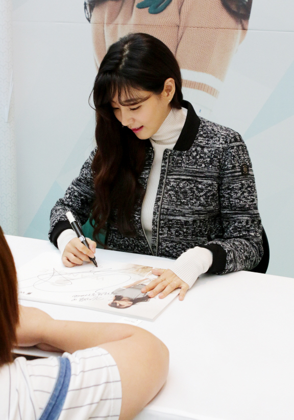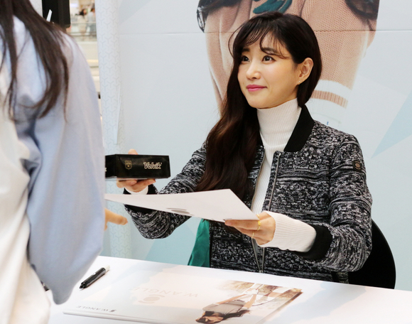 [쿠키뉴스=이은지 기자] 골프웨어 와이드앵글의 전속 모델 김사랑이 10일 오후 1시 30분 신세계 스타필드 하남점 3층에 마련된 와이드앵글 매장에서 팬 사인회를 진행했다.