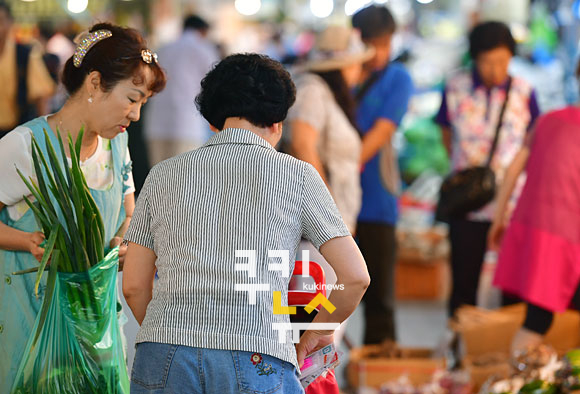 [쿠키뉴스=박효상 기자] 추석을 사흘 앞둔 12일 서울 마포구 마포농수산물시장을 찾은 시민이 차례상에 올릴 아채를 고르고 있다. tina@kukinews.com