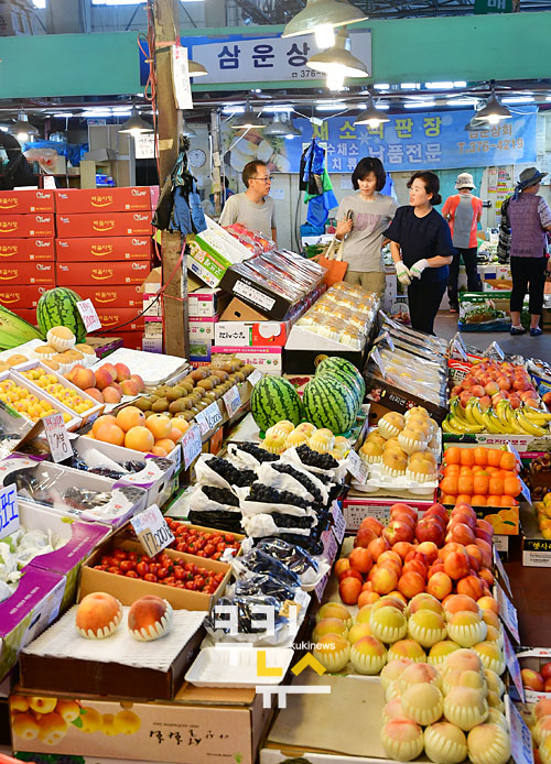 [쿠키뉴스=박효상 기자] 추석을 사흘 앞둔 12일 서울 마포구 마포농수산물시장를 찾은 제수용품을 장만하려는 시민들이 시장을 둘러보고 있다. tina@kukinews.com