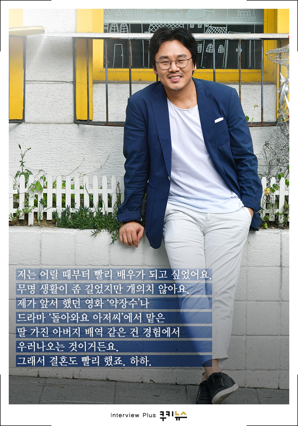 “저는 어릴 때부터 빨리 배우가 되고 싶었어요. 무명 생활이 좀 길었지만 개의치 않아요. 제가 앞서 했던 영화 ‘약장수’나 드라마 ‘돌아와요 아저씨’에서 맡은 딸 가진 아버지 배역 같은 건 경험에서 우러나오는 것이거든요. 그래서 결혼도 빨리 했죠. 하하.”