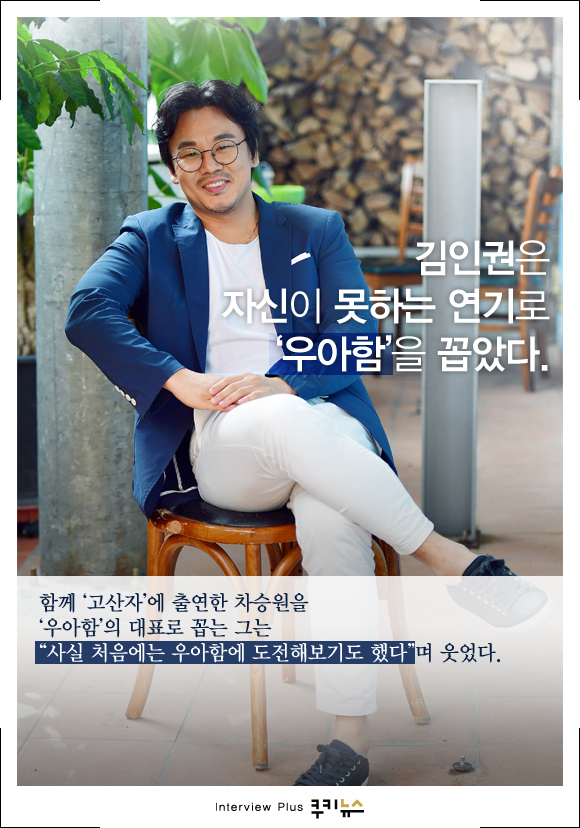 김인권은 자신이 못하는 연기로 ‘우아함’을 꼽았다. 함께 ‘고산자’에 출연한 차승원을 ‘우아함’의 대표로 꼽는 그는 “사실 처음에는 우아함에 도전해보기도 했다”며 웃었다.