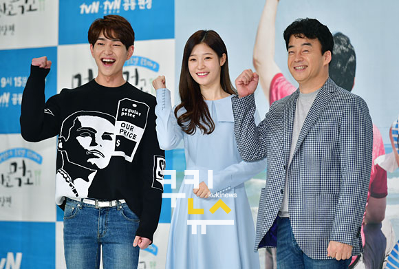 [쿠키뉴스=박효상 기자] 샤이니 온유와 다이아 정채연, 방송인 백종원이 21일 오후 서울 영중로 타임스퀘어 아모리스 홀에서 열린 tvN ‘먹고 자고 먹고’ 제작발표회 참석해 포즈를 취하고 있다.