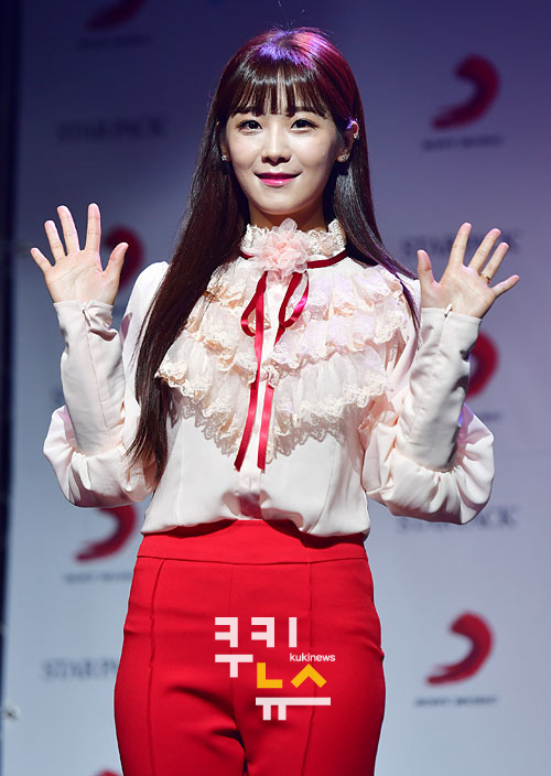 [쿠키뉴스=박효상 기자] 걸그룹 크레용팝(금미, 소율, 웨이, 초아, 엘린)의 소율이 23일 오후 서울 서교동 예스24무브홀에서 열린 정규 1집 ‘에볼루션 팝 볼륨 원' 발매 기념공연에서 포즈를 취하고 있다.