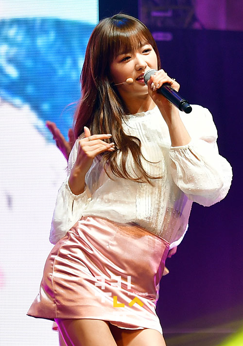[쿠키뉴스=박효상 기자] 걸그룹 에이핑크(박초롱, 손나은, 윤보미, 김남주, 정은지, 오하영)의 윤보미가 26일 오후 서울 광진구 화양동 건국대학교 새천년관에서 열린 에이핑크 정규 3집 'Pink Revolution' 발매 기념 공연에서 멋진 무대를 선보이고 있다.