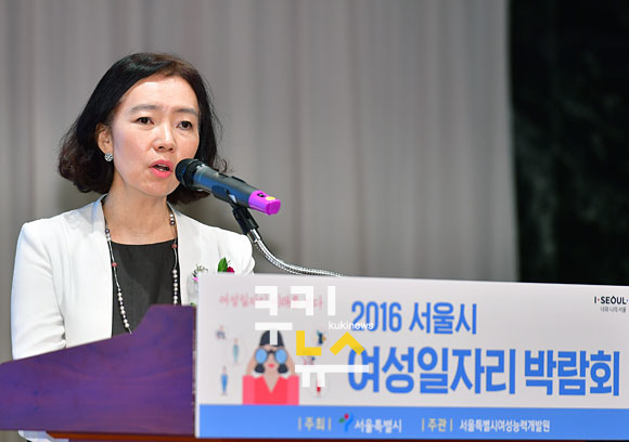 [쿠키뉴스=박효상 기자] 서미경 서울특별시여성능력개발원장이 27일 오후 서울 여의도 중소기업중앙회 그랜드홀에서 열린 ‘2016 서울시 여성 일자리박람회’에서 개회사를 말하고 있다.