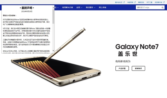 삼성 중국법인은 29일 오후 공식 홈페이지에 중국 소비자에게 갤럭시노트 7과 관련한 제품의 안정성에 대해 자세히 설명하지 못했다며 사과문을 올렸다.