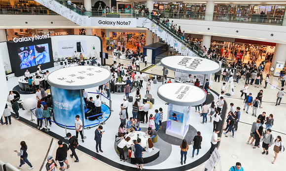 삼성전자는 지난 9월 30일부터 영등포 타임스퀘어, 코엑스 밀레니엄 광장, 고속터미널 파미에스테이션 등에서 새로운‘갤럭시 노트7’ 체험존 운영을 시작했으며 향후 CGV 여의도점, 청담 씨네시티점, 판교점 등 주요 극장가와 광화문 D타워, 강남 파이낸스 센터 등 오피스 빌딩까지 체험존을 확장할 예정이다.
