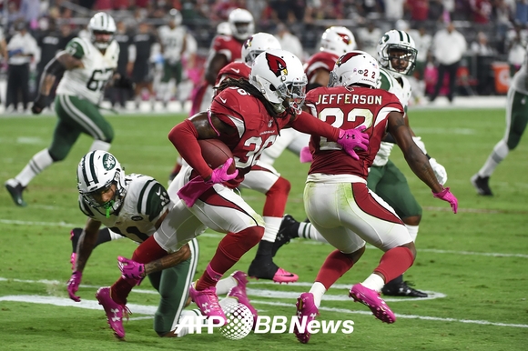 [쿠키뉴스=박효상 기자] 18일(한국시간) 미국 애리조나주 피닉스 대학 스타디움에서 NFL(내셔널풋볼리그) 애리조나 카디널스와 뉴욕 제츠의 경기가 열렸다. 이날 경기는 홈팀 애리조나가 28-3으로 완승했다. ⓒAFP BBNews = News1 tina@kukinews.com