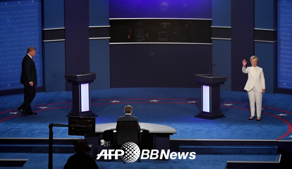 [쿠키뉴스=구현화 기자] 19일(현지시간) 네바다주 라스베가스에서 도날드 트럼프 공화당 후보(사진 왼쪽)와 힐러리 클린턴(사진 오른쪽)이 대통령 후보 토론회에 참석하고 있다.