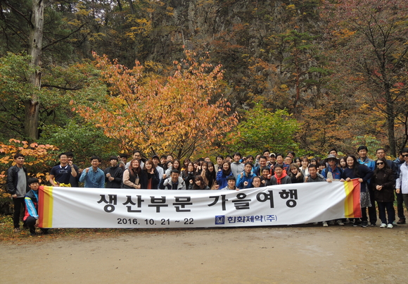 이번 포상휴가는 지난 21일부터 22일까지 1박 2일 간 생산부 직원 80여 명이 참석해 가을여행을 겸한 워크숍을 다녀오는 형식으로 진행됐다. 이들은 21일 오전 춘천 공장을 출발해 강원도 속초와 강릉 일대를 함께 여행하며 가을정취를 만끽했으며, 생산부 미래 발전에 관한 워크숍도 가졌다.