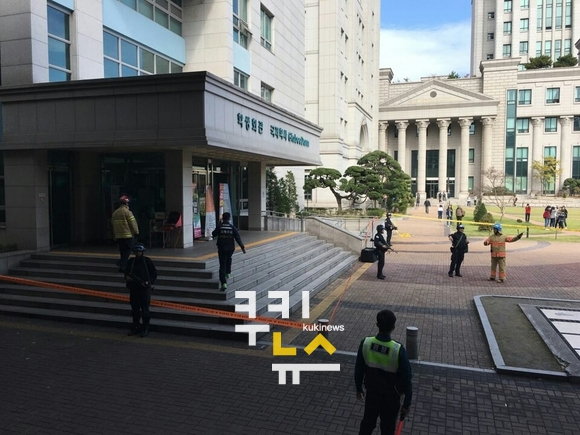 [쿠키뉴스=민수미 기자] 28일 서울 동대문구 한국외국어대학교에서 폭발물 의심 신고가 들어와 학생들이 대피하는 소동이 일어났다.