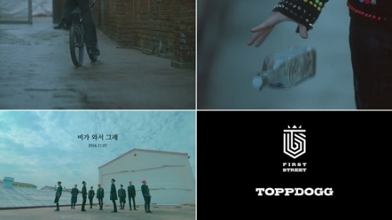 [쿠키뉴스=이은지 기자] 보이 그룹 탑독이 1일 0시 공식 홈페이지와 SNS를 통해 정규 1집 앨범 '퍼스트 스트릿'(First Street)의 타이틀곡 '비가 와서 그래' 티저 영상을 공개하며 1년만의 컴백을 공식적으로 알렸다.