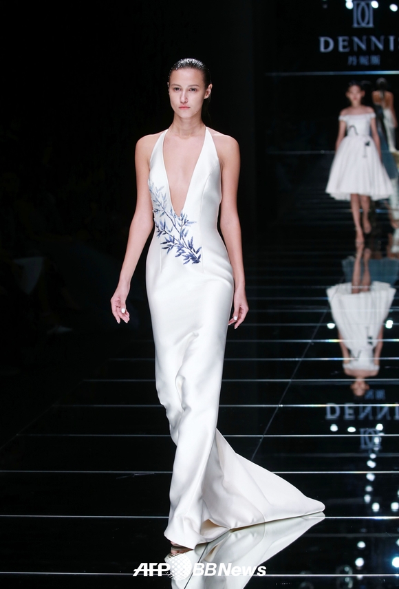 [쿠키뉴스=박효상 기자] 한 모델이 31일(현지시각) 중국 베이징에서 열린 패션위크 디자이너 후앙부얀의 패션쇼에서 런웨이를 걷고 있다.ⓒAFP BBNews = News1  tina@kukinews.com