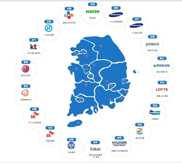 지난 2014년 9월 대구 혁신센터(삼성)을 시작으로 10월 대전센터(SK), 11월 전북센터(효성), 12월 경북센터(삼성), 포항센터(포스코), 광주센터(현대차) 등이 만들어졌다.