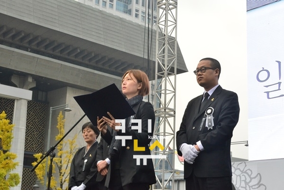 김영호 상임장례위원장은 추도사에서 “영결식이 있기까지 하루하루가 긴장의 연속이었고, 싸움이었다”며 “고통의 날을 보내면서도 꿋꿋하게 자리를 지킨 유족에게 존경의 말씀을 올린다”고 말했다.
