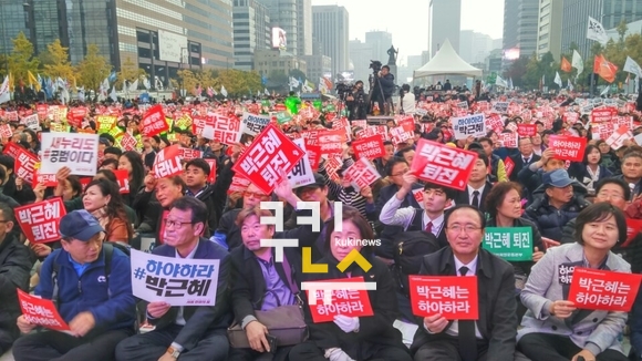 5일 오후 4시부터 서울 종로구 광화문광장에서는 민중총궐기 투쟁본부 등 진보진영 여러 시민사회와 노동단체가 주관하는 ‘모이자! 분노하자! #내려와라 박근혜 2차 범국민행동’이 진행됐다.