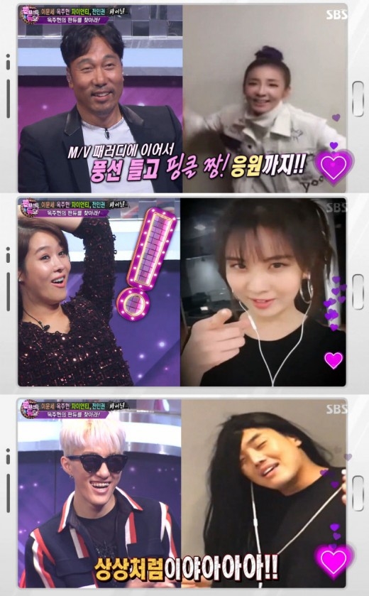 6일 방송된 SBS ‘판타스틱 듀오’에선 옥주현이 출연해 가창력을 뽐냈다. 이날 옥주현의 스마트폰 예선에는 그녀의 오랜 팬이라는 걸 그룹 멤버들이 출연했다. 소녀시대 서현과 2NE1 산다라박이 주인공이다. 특히 산다라박은 핑클 ‘NOW’에 맞춰 응원구호를 외치는 것으로 팬심을 과시했다.