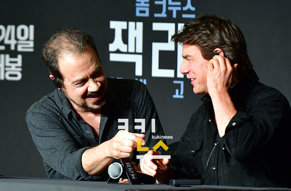 [쿠키뉴스=박효상 기자] 할리우드 배우 톰 크루즈가 7일 오후 서울 강남구 역삼동 리츠칼튼호텔에서 열린 영화 '잭 리처: 네버 고 백' 내한 기자회견에 참석해 에드워드 즈윅 감독과 이야기를 나누고 있다.