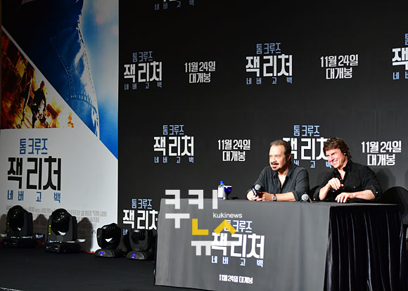 [쿠키뉴스=박효상 기자] 할리우드 배우 톰 크루즈가 7일 오후 서울 강남구 역삼동 리츠칼튼호텔에서 열린 영화 '잭 리처: 네버 고 백' 내한 기자회견에 참석해 에드워드 즈윅 감독과 이야기를 나누고 있다.